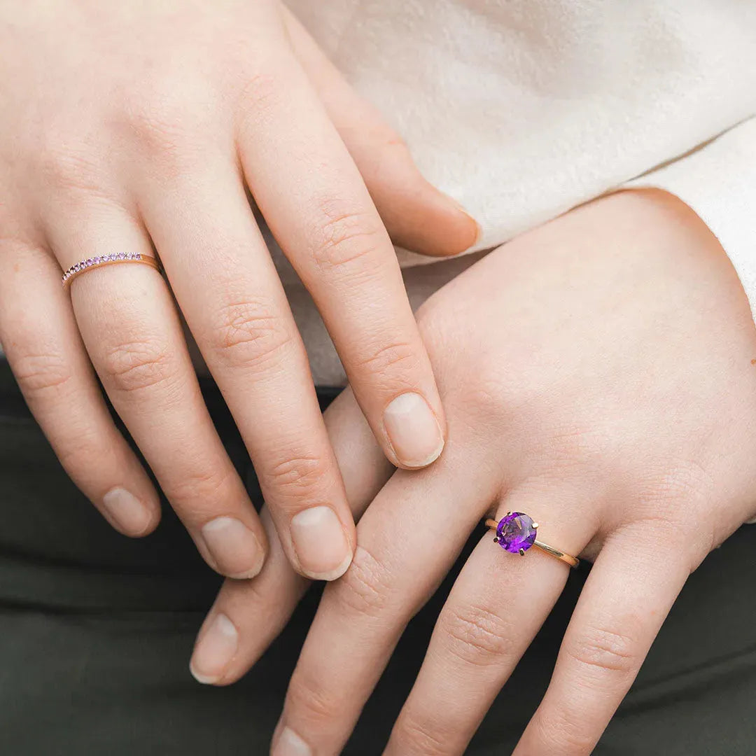 Our OD Classics birthstone rings are truly classic and timeless stackable rings. Wear a birthstone ring for yourself or a loved one. Amethyst has a mystical purple color and is the birthstone for February.