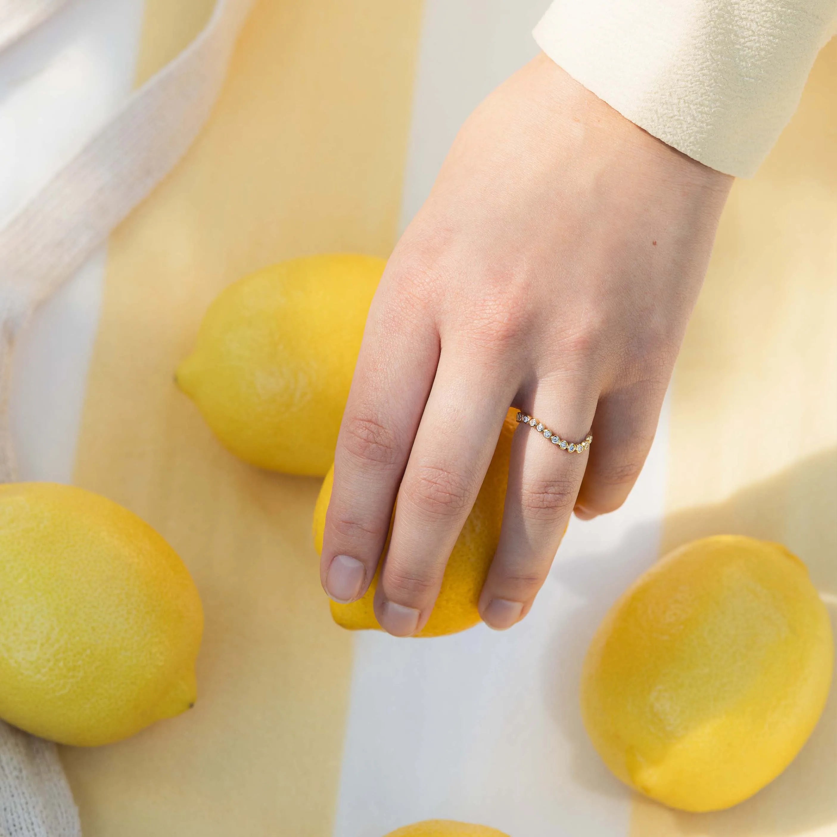 The Flowy Bubble Diamond Half Eternity Ring is the perfect stackable ring for anyone who loves a playful look. The half eternity ring offers both a luxurious look and comfort. The Bubble Diamond ring can be worn on any finger, adding a touch of sparkle to your ring stack.