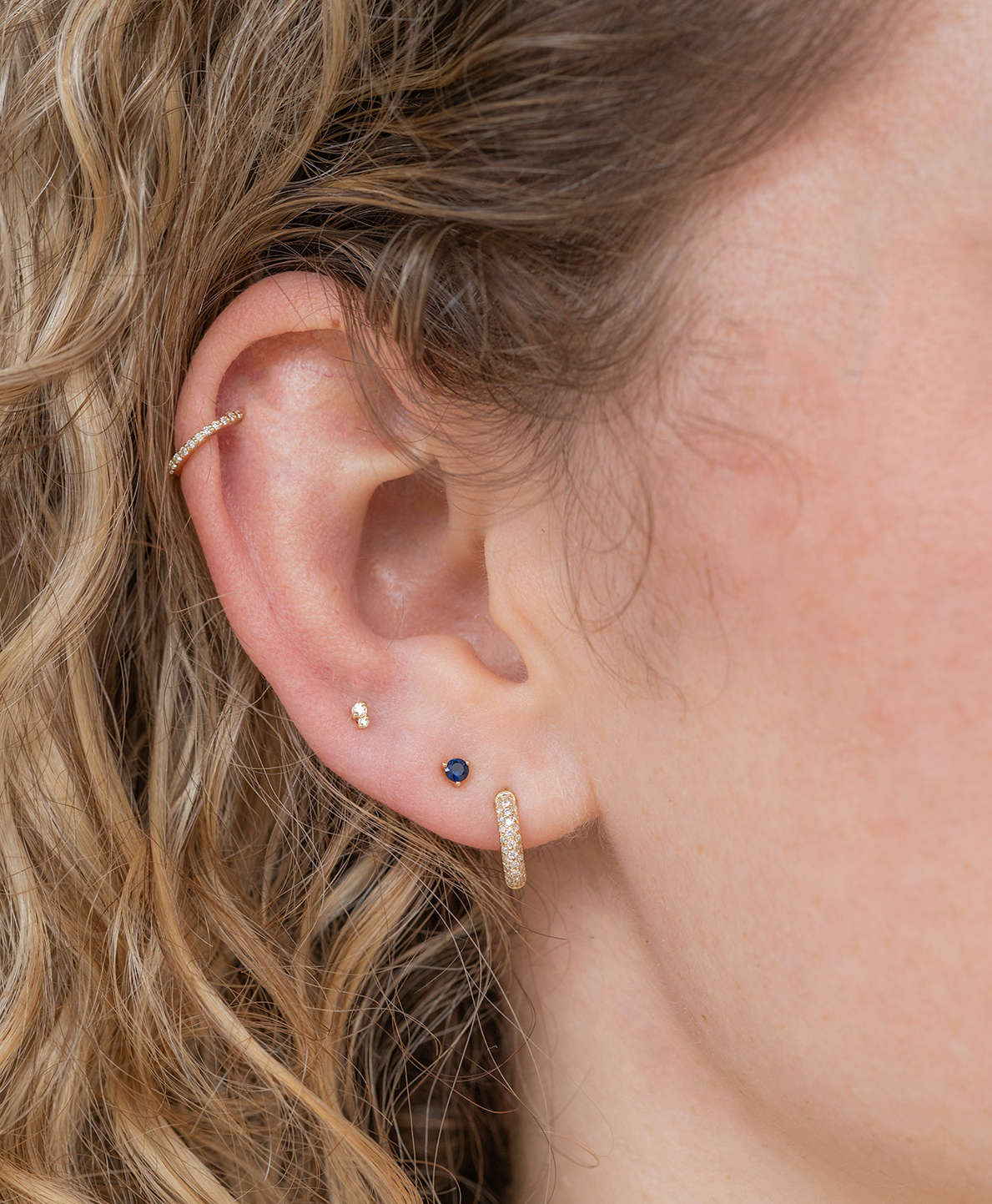 The Classic Stud Piercing with sapphire in 14k gold is a refined earring that adds a touch of luxury to any look. Sapphire, the September birthstone , adds a personal touch. The Classic Stud Piercing can be worn in any earring hole.