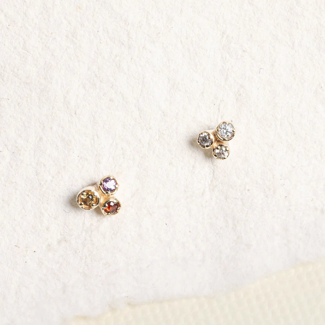 Colorful, luxurious, and playful. The Triple Multicolor Stud Piercing makes a beautiful matching stud earring on its own, but also pairs perfectly with the Multicolor Huggie and Multicolor Alliance rings. Or combine the stud with the Citrine or Ruby Huggie for a uniquely styled, colorful ensemble.