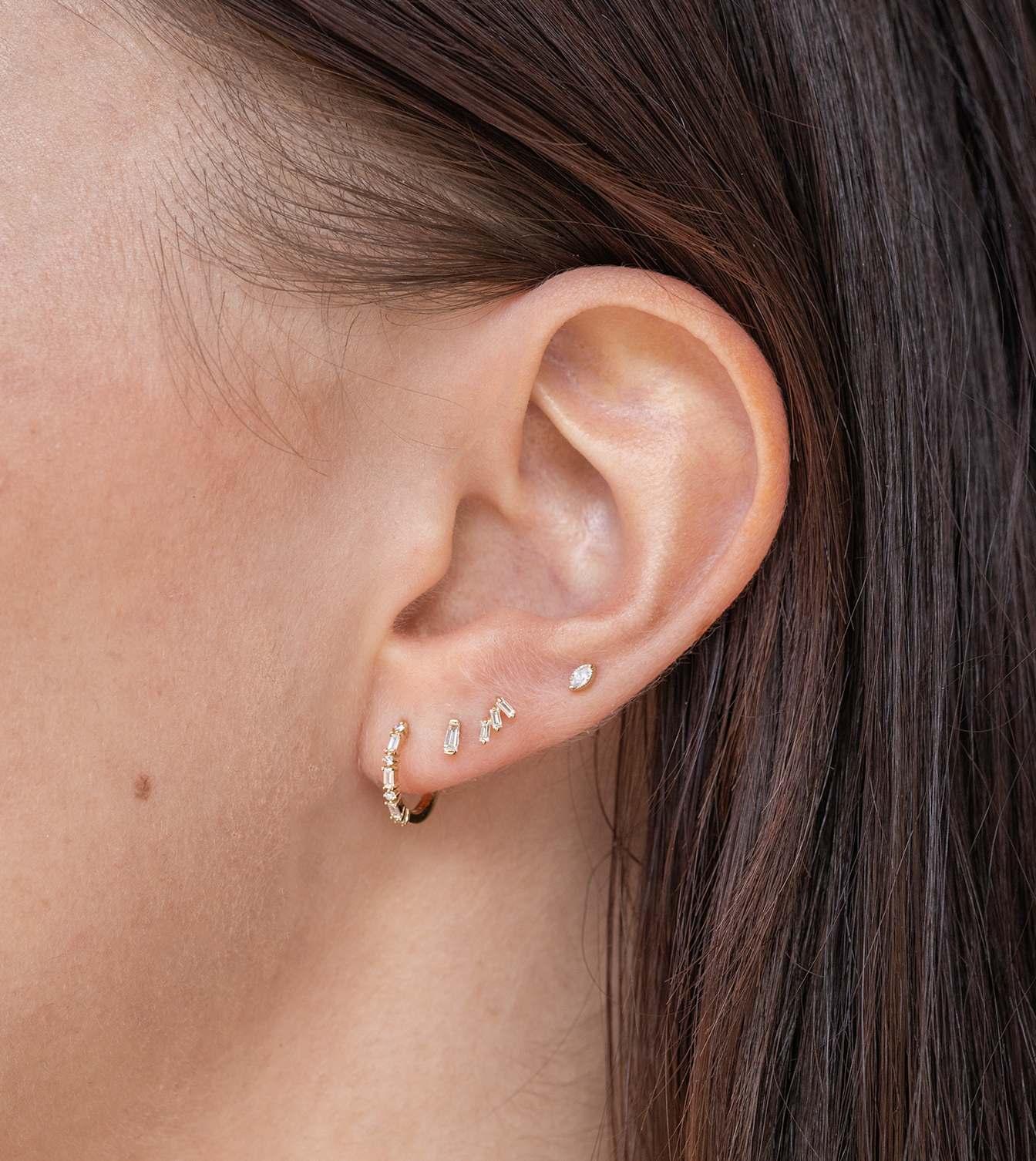 The Fancy Baguette Diamant Huggie is perfect for everyday use and for special occasions. The huggie can be perfectly combined with other earrings from the OD collections and is a perfect match with the Fancy Baguette Ring